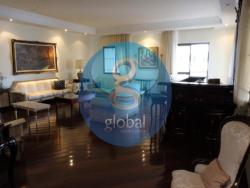 Apartamento completo com armários com excelente localização conta com 4 vagas de garagem, espaço para depósito no subsolo, dormitório e banheiro de serviço, 2 dispensas, uma cozinha com cook top, sala de almoço, sala de jantar, sala de estar com bar ao estilo inglês, varanda na sala, sala de TV com Home teather, hall de entrada, escritório, 1 lavabo, 2 suítes com closet, 2 dormitórios com banheiro americano, AC completo, piso de madeira, cozinha com chão de granito.